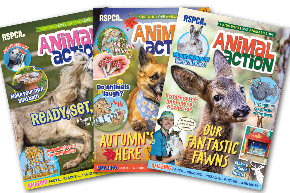 Animal action magazine is perfect for young animal lovers! It’s packed with awesome animal facts, expert pet care advice and behind-the-scenes peeks at our centres and work. You can read heartwarming stories about the animals we rescue, rehome and release, and collect beautiful posters. You can also get stuck into our super-fun puzzles, crafts and competitions.