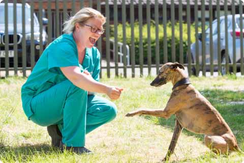 The first time I met Terry, he was just out of intensive care after life-saving treatment. He was in such a sad state, understandably quiet and withdrawn. Today he’s a different dog – happy, healthy and confident – and settled with his new owner Rachel, one of the PDSA vet nurses who first cared for him.