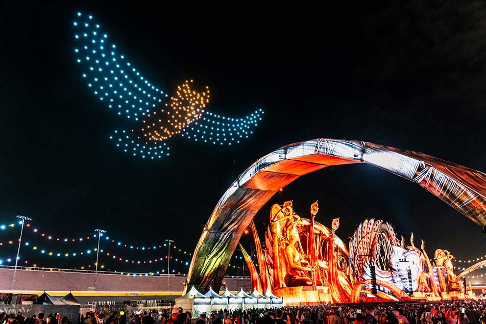 Drones are the most commonly used alternative to fireworks. In these displays, illuminated drones swoop and swarm in the night sky to make mesmerising patterns and images. Practically anything is possible with drones – they’re a way to let your imagination run wild without the worry of your pet’s welfare weighing on your mind.