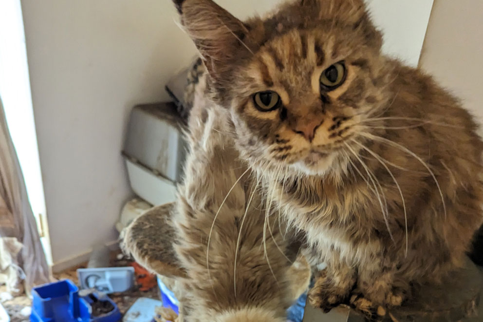 We found two cats left by their owner without any food or water - they were suffering, but now Wednesday and Pugsley have been given fresh starts.