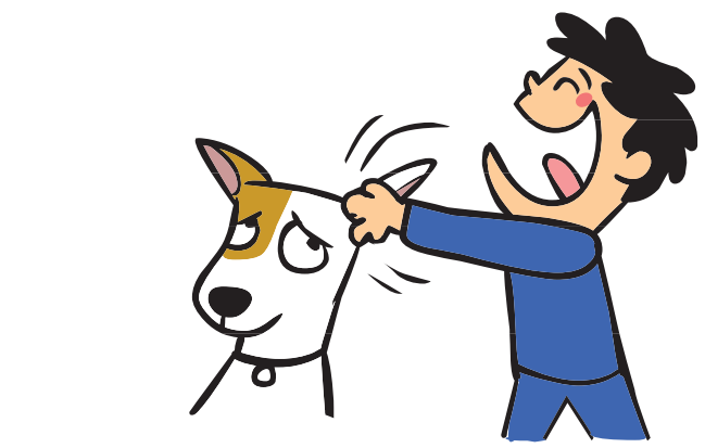 • grabbing dogs’ tails or ears