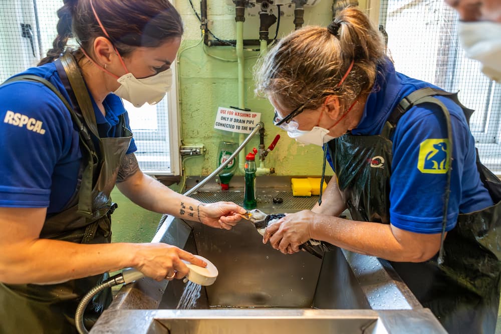 For seabirds in rehabilitation, feathers can get damaged from all the handling during feeding, weighing and treatment. For a bird that spends their life at sea, damaged waterproofing is life threatening.