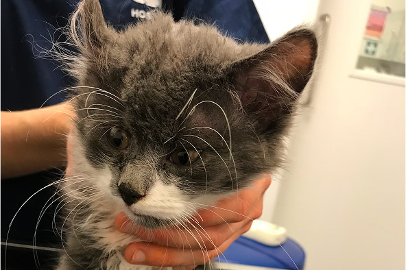 We tested Berlioz’s blood and x-rayed him, and we carried out a post-mortem on his brother’s body – it was clear they’d both been physically abused, repeatedly. We put Berlioz on anti-inflammatory medication and pain relief, then we gave him flea and worm treatment. Berlioz was bright and alert but not playful like a kitten should be. He was more scared than curious.